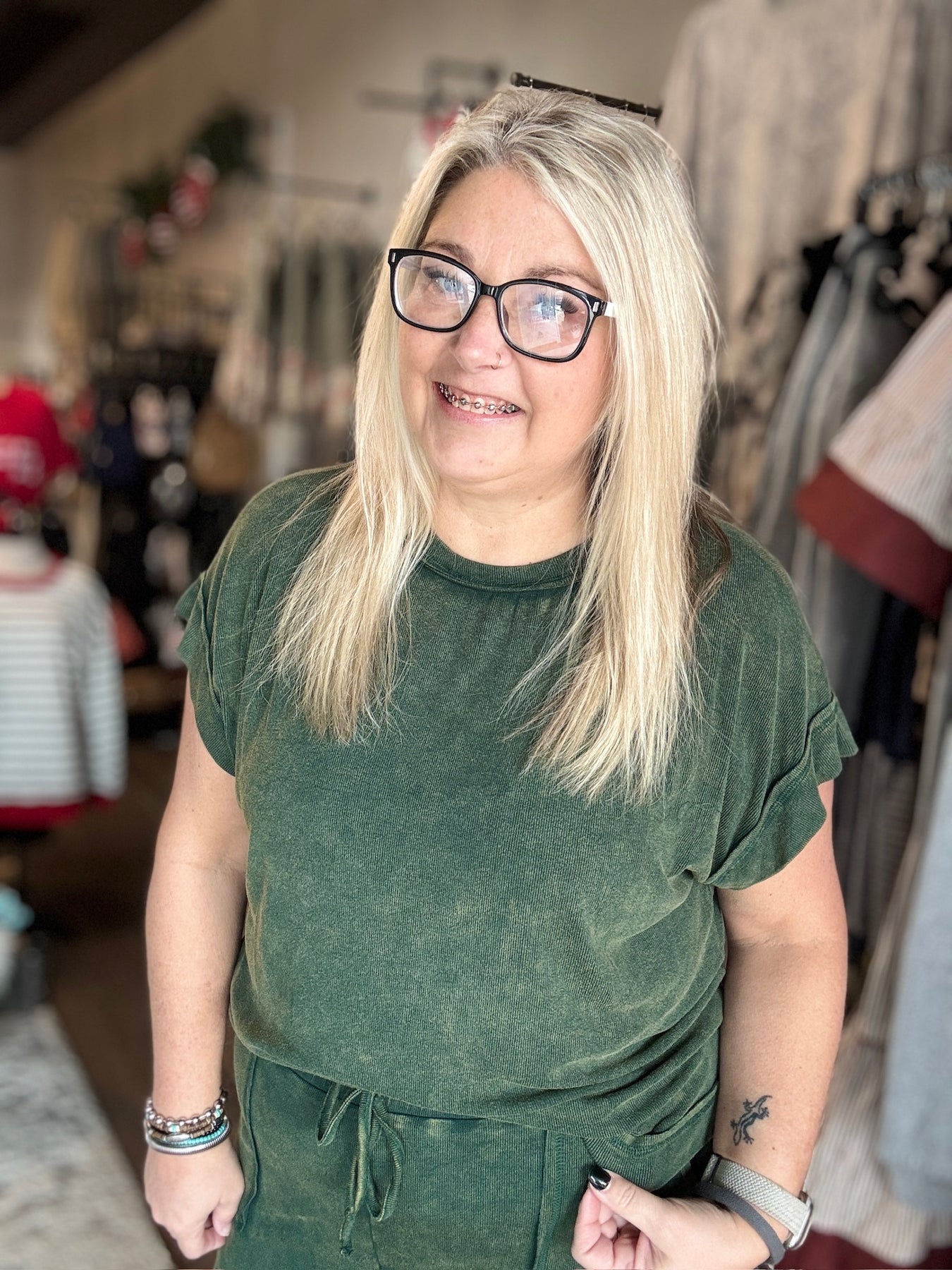 Jenny is wearing a size small