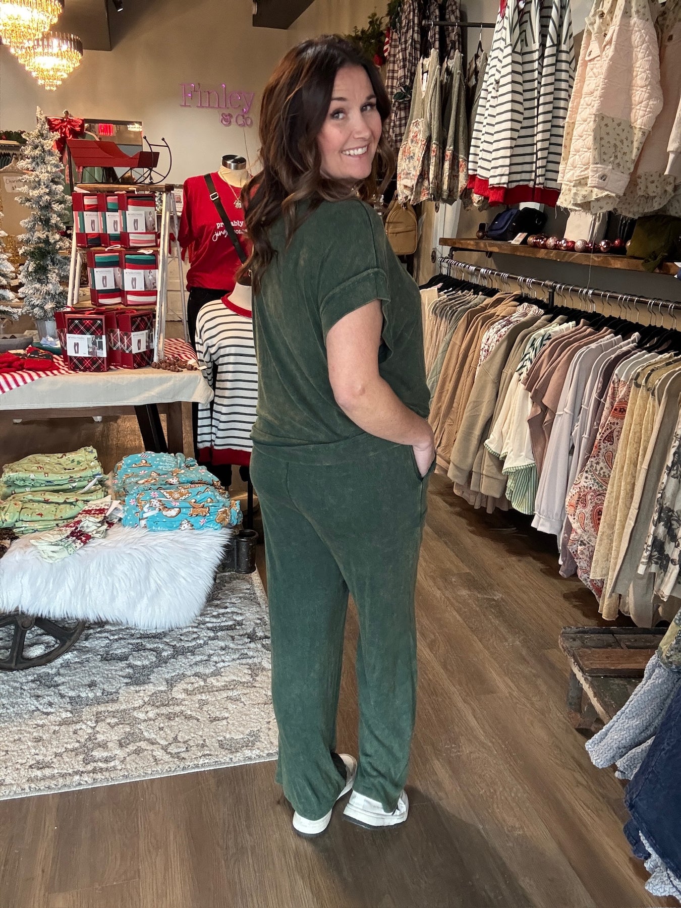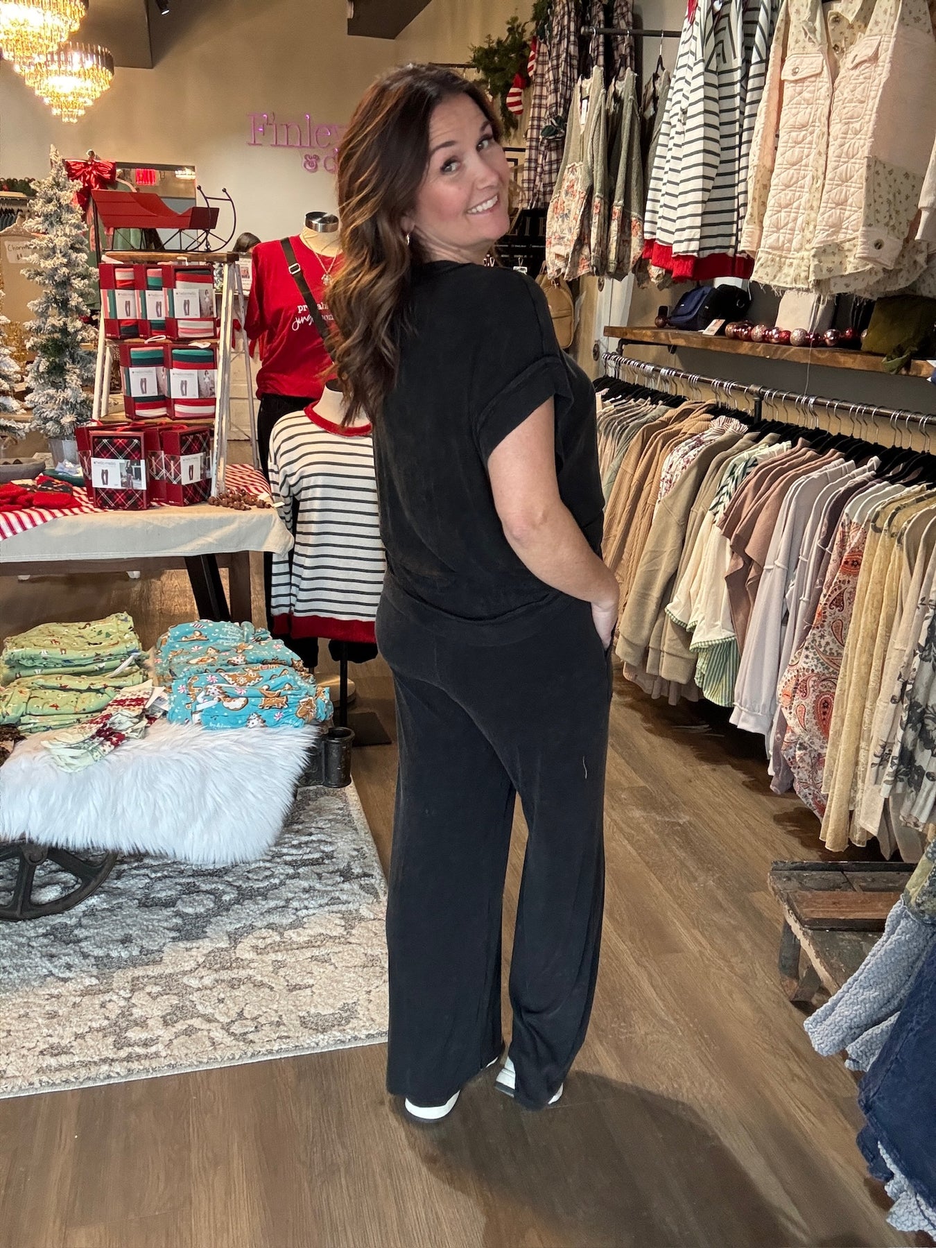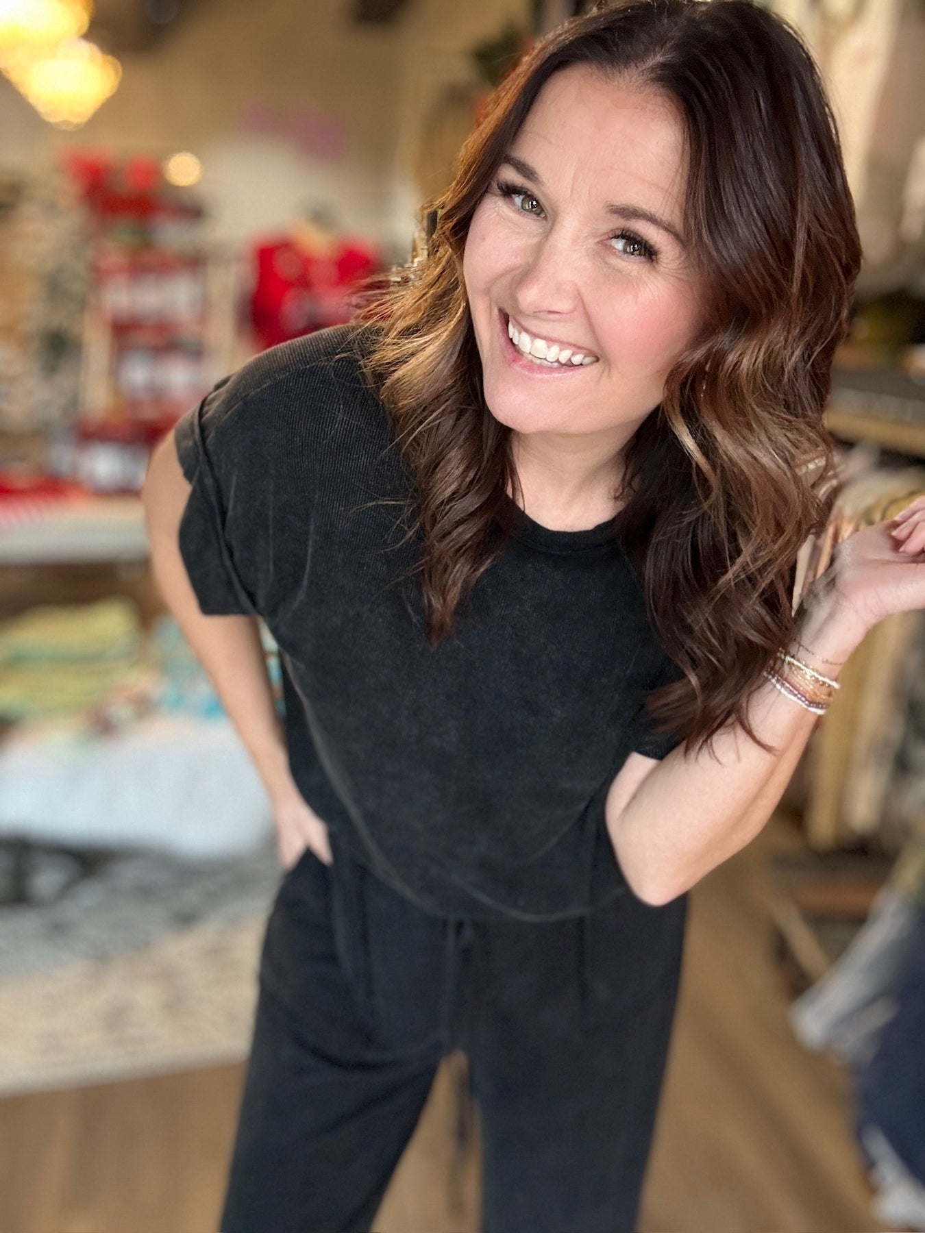 Slip into ultimate comfort with this mineral wash ribbed lounge set—your new favorite excuse to stay cozy all day. Featuring a relaxed round neckline, oversized silhouette, and wide-leg pants with an elastic waistband and drawstring, this set is basically a warm hug you can wear. The ribbed texture adds subtle dimension while the mineral wash gives each piece that effortlessly cool, lived-in vibe. Available in moody hunter green and classic black, it's the kind of set that works for lounging, running errands, or pretending you're on vacation. Pure comfort, zero compromises.