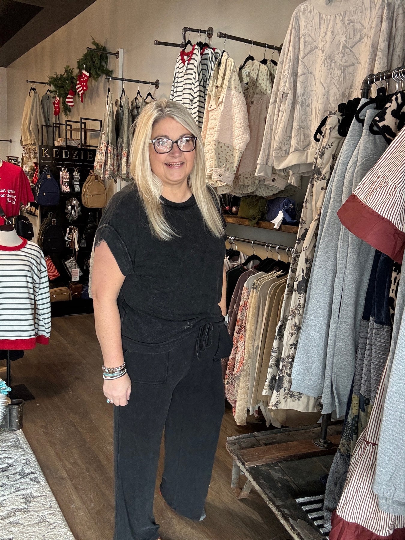 Angela is wearing a size large