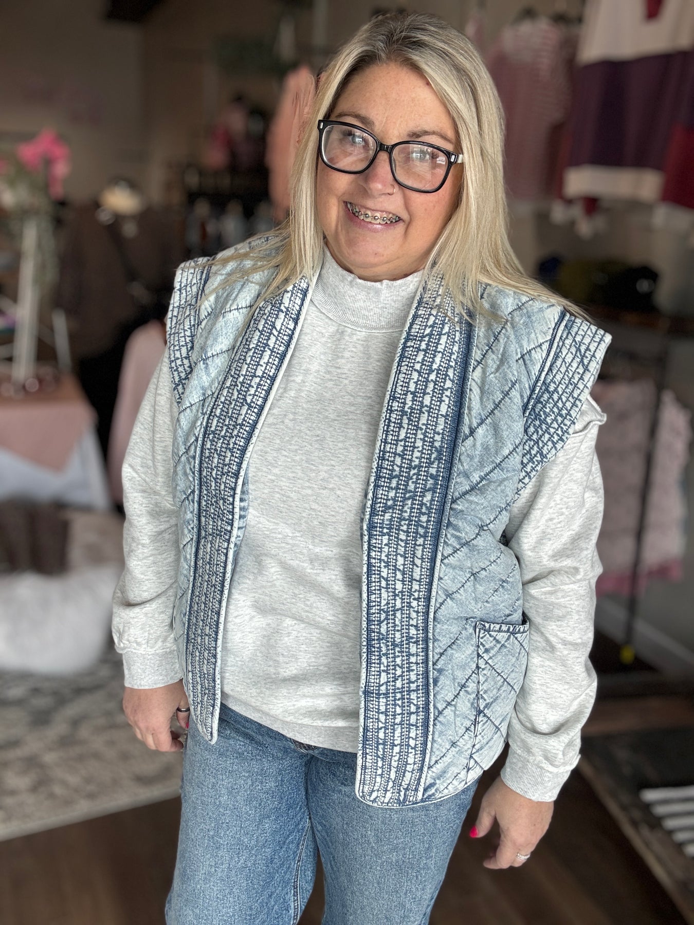 Washed Denim Quilted Vest