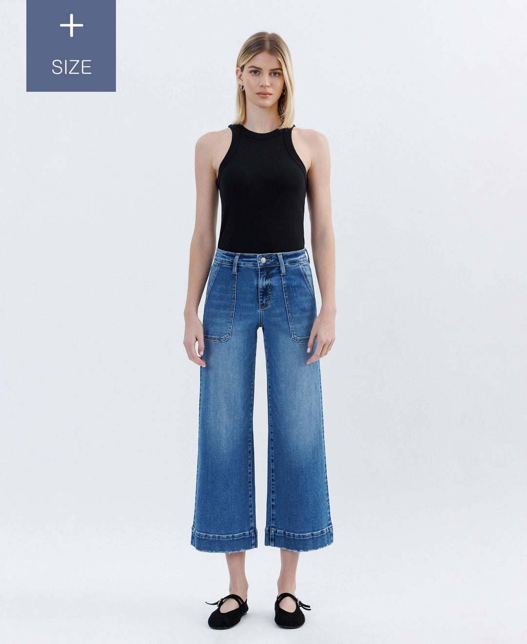 PLUS SIZE HIGH RISE CROP UTILITY WIDE LEG JEANS LV1666-P