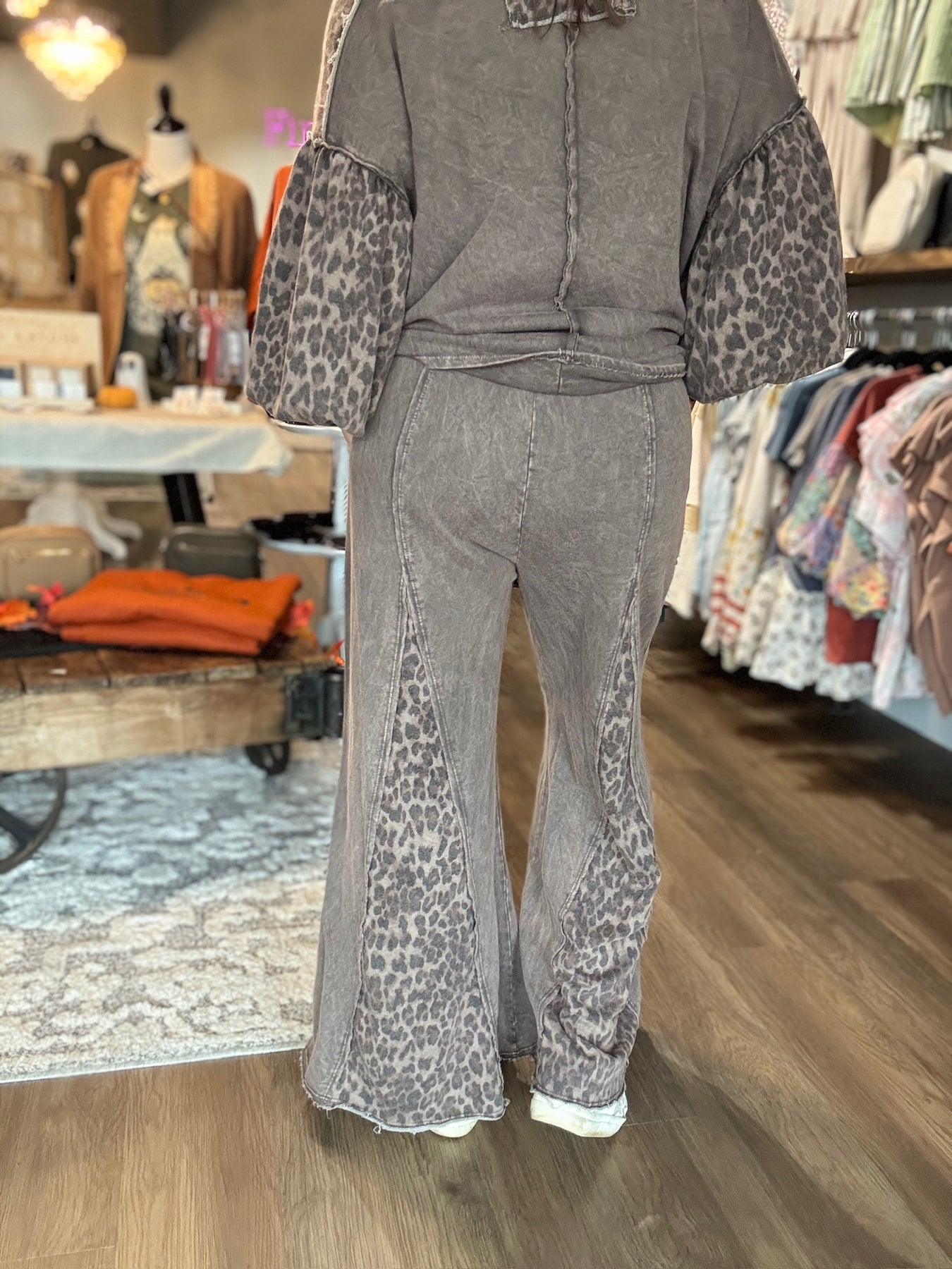 Step into cozy style with these Brown Leopard Wide Leg Sweatpants. Featuring a washed brown color and playful leopard print details, their wide-leg, high-rise fit offers both comfort and flair. Equipped with pockets, they pair perfectly with the matching top to create a fun, cute fall set you'll love lounging or stepping out in.