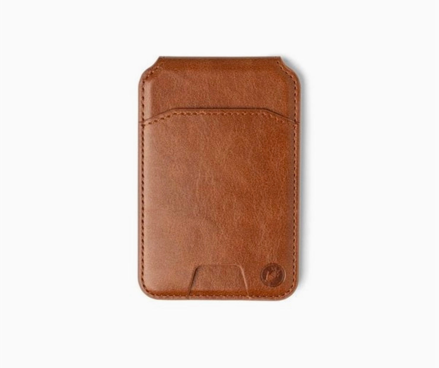 Whip it out, slap it on! This convenient wallet has the traditional style men look for with a modern magnetic backing that sticks securely onto the back of their phone. Easily carry 3 cards and an ID with any MagSafe phone or case. Magnetic backing sticks to MagSafe phones and cases 3 card slots + ID window Durable vegan leather. Comes in Black, Charcoal, Camel and Navy Blue! Perfect stocking stuffer for men and women!!
