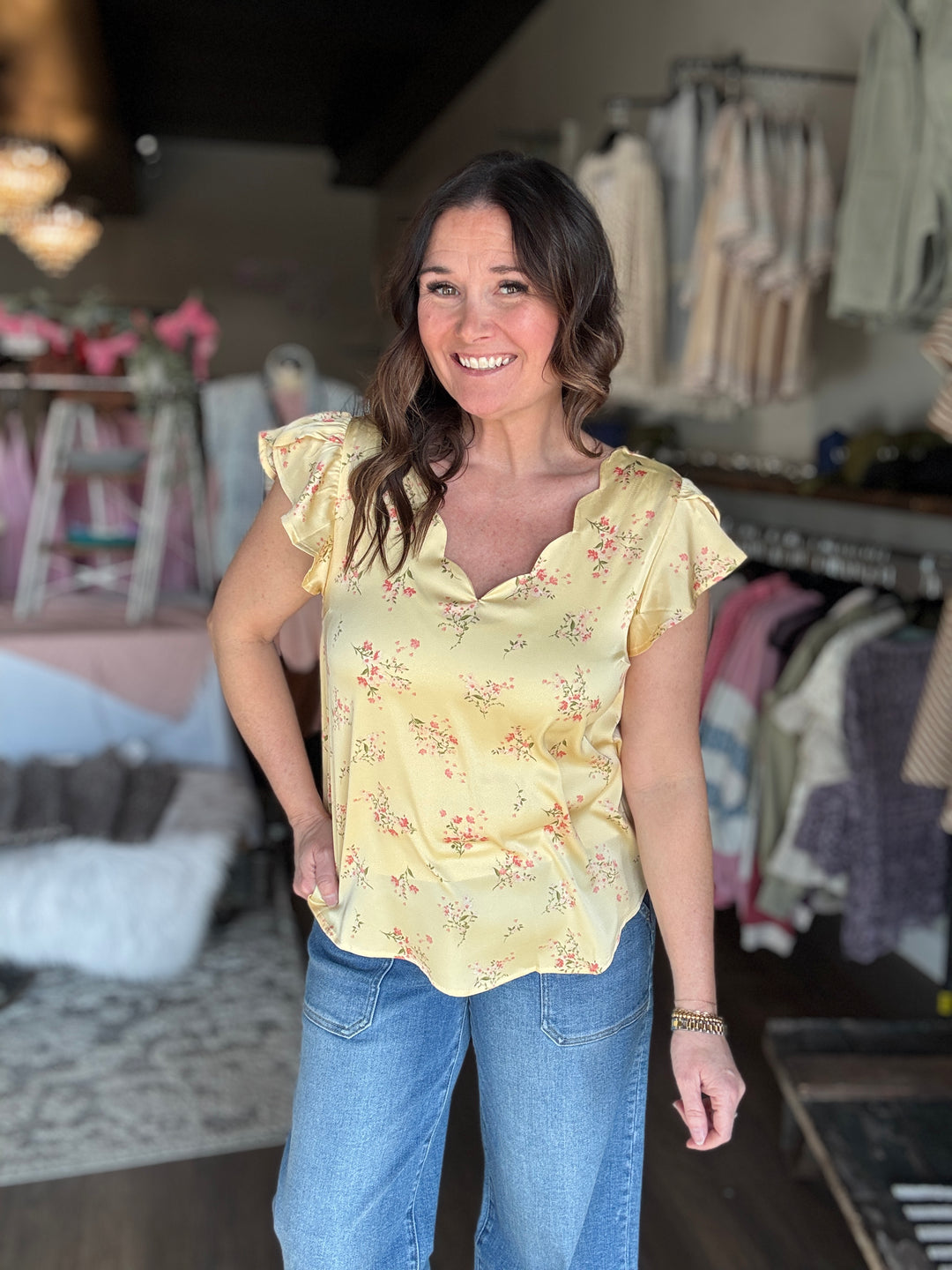 Buttercream Floral Scalloped Top