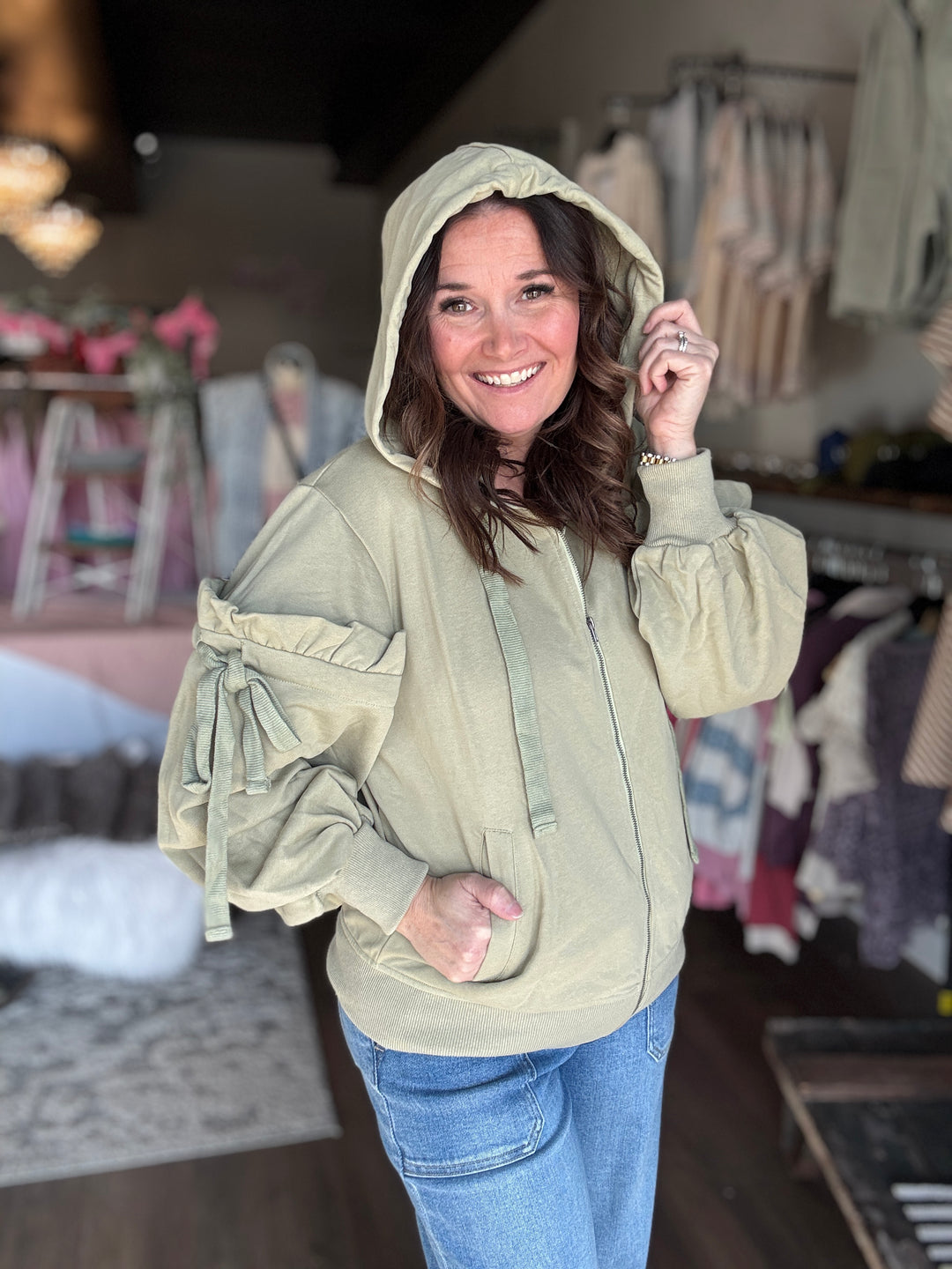 Blushing Bow Zip Up Sweatshirt