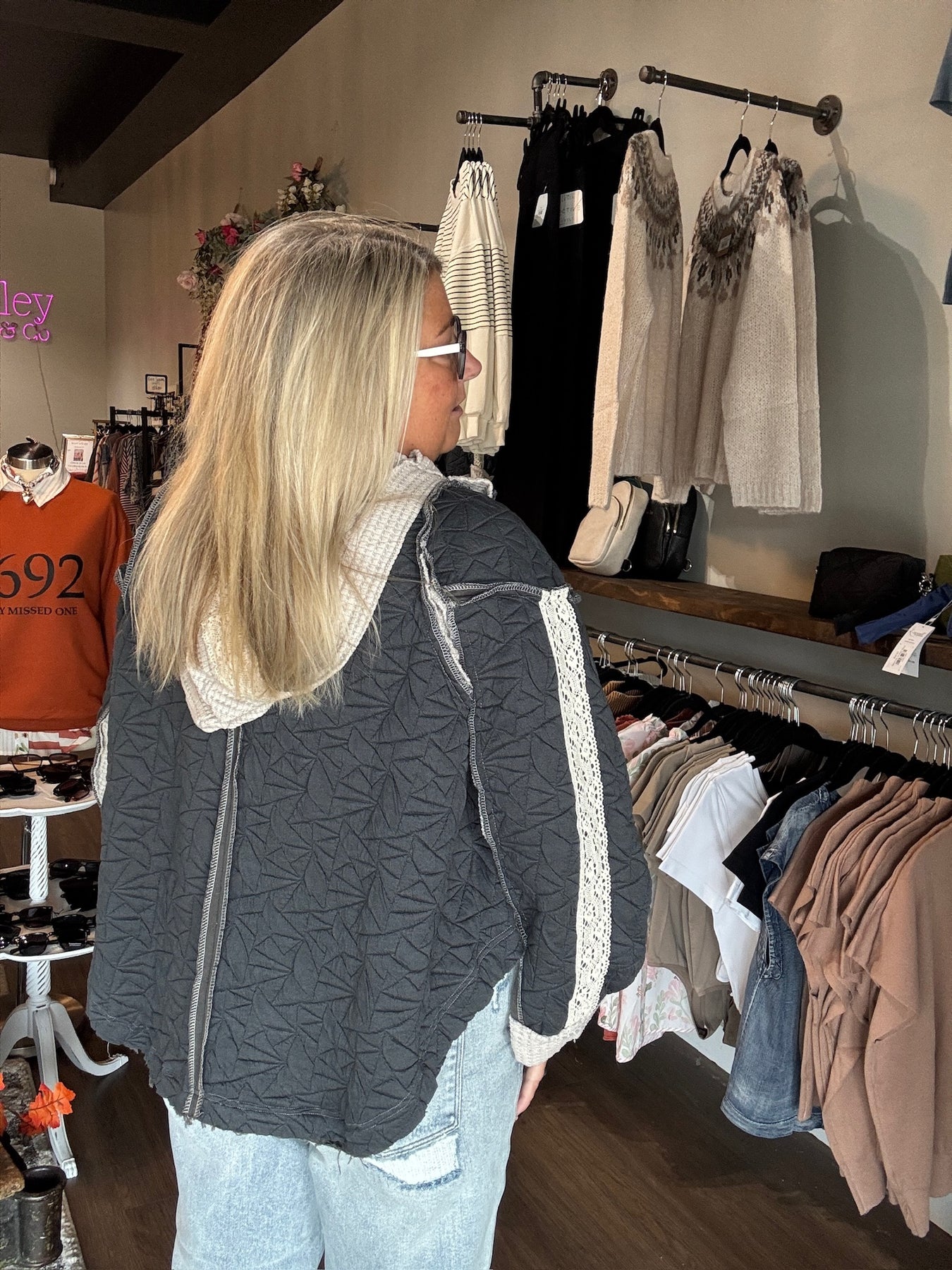 Stay cozy and cute this fall with the Pol Quilted Hooded Sweatshirt. Its quilted patchwork design adds playful texture, while the oversized fit and hood keep you wrapped in comfort. Available in soft cream and charming cornflower blue, this quarter-zip pullover is perfect for layering on crisp autumn days. Embrace chilly weather with style and a touch of fun!